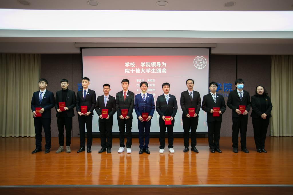 校区及学院领导为获奖学生颁发荣誉证书并合影留念。获奖学生代表、“院十佳大学生”获得者曹营华发言。他分享了自己三年大学生活的成长,无论前路多渺茫,他都坚持不懈,学习上努力刻苦,科研中创先争优,才取得了今天的成绩。他呼吁每一名同学秉承机械学院“朴实厚重 追求卓越”的院训精神,脚踏实地,厚积薄发,在时代浪潮里奋进为圆梦青年。