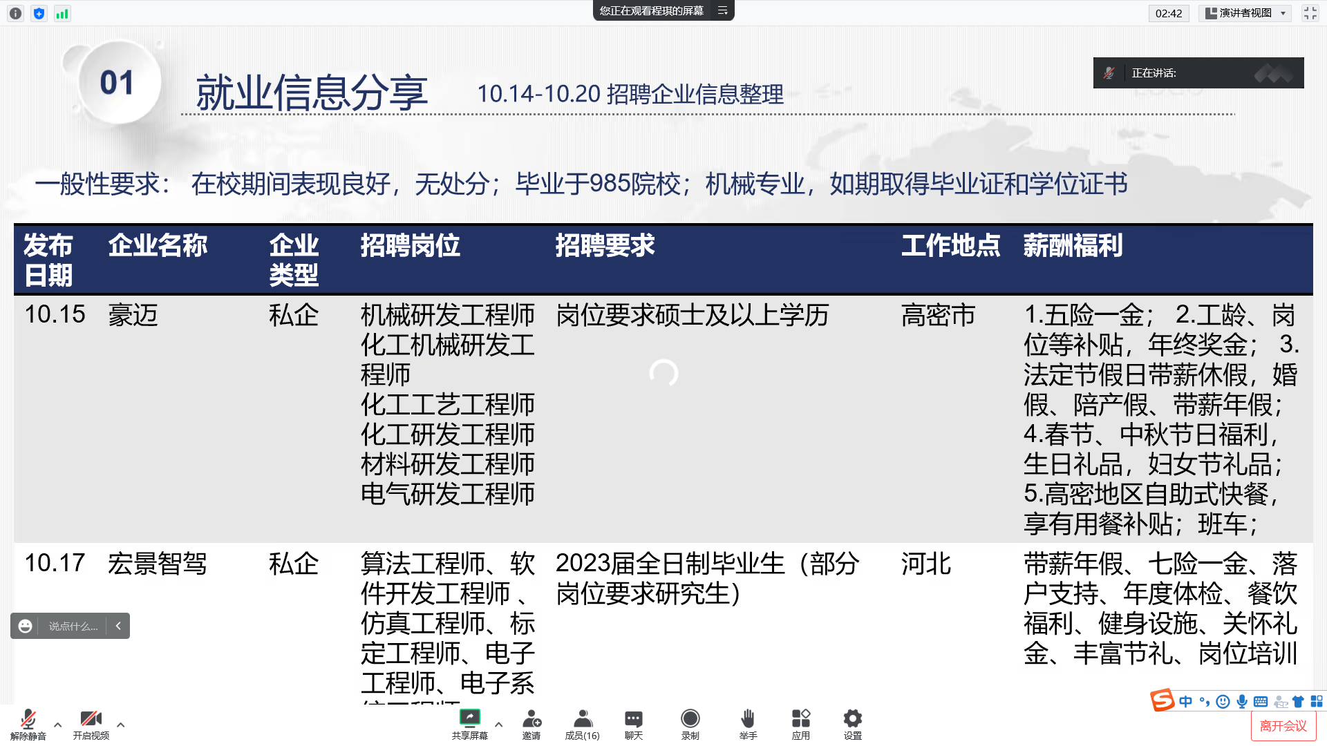 为进一步加强亿万先生MR对研究生就业指导,推进亿万先生MR毕业生顺利签约,10月21日上午,亿万先生MR通过腾讯会议线上开展“勇往‘职’前”就业信息分享会(三),2020级研究生参加了本期活动。