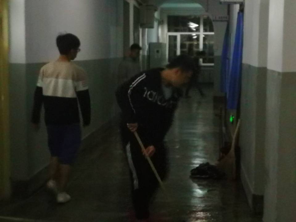 在上午与门卫和保洁阿姨队长进行了细致地交流与安排后,我们安排团支部的成员于傍晚携带卫生工具进入教学楼。整个活动过程中,同学们任劳任怨,首先是不遗余力地对教学楼进行全方位的打扫,清理教室里的废纸、空瓶,擦讲台、窗户,拖走廊,细致地进行了学生力所能及几乎所有工作,整个过程同学们尽量不发出声音,以免打扰到教室里的同学们自习。另外团支部安排同学精心制作了“严谨治学”,“谨小慎微”,“履行保持教室整洁义务”等内容的海报,希望不仅让教学楼保持一天的整洁,更能将青年责任与我们日常的学习生活结合起来传达给同学们,真正迎合团日活动的初衷。
